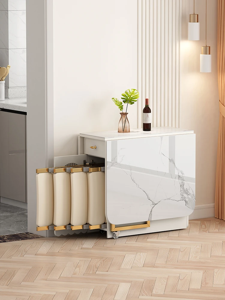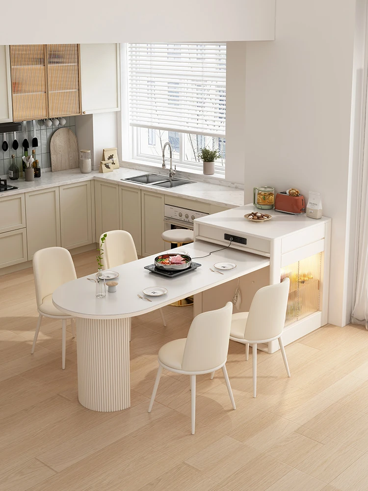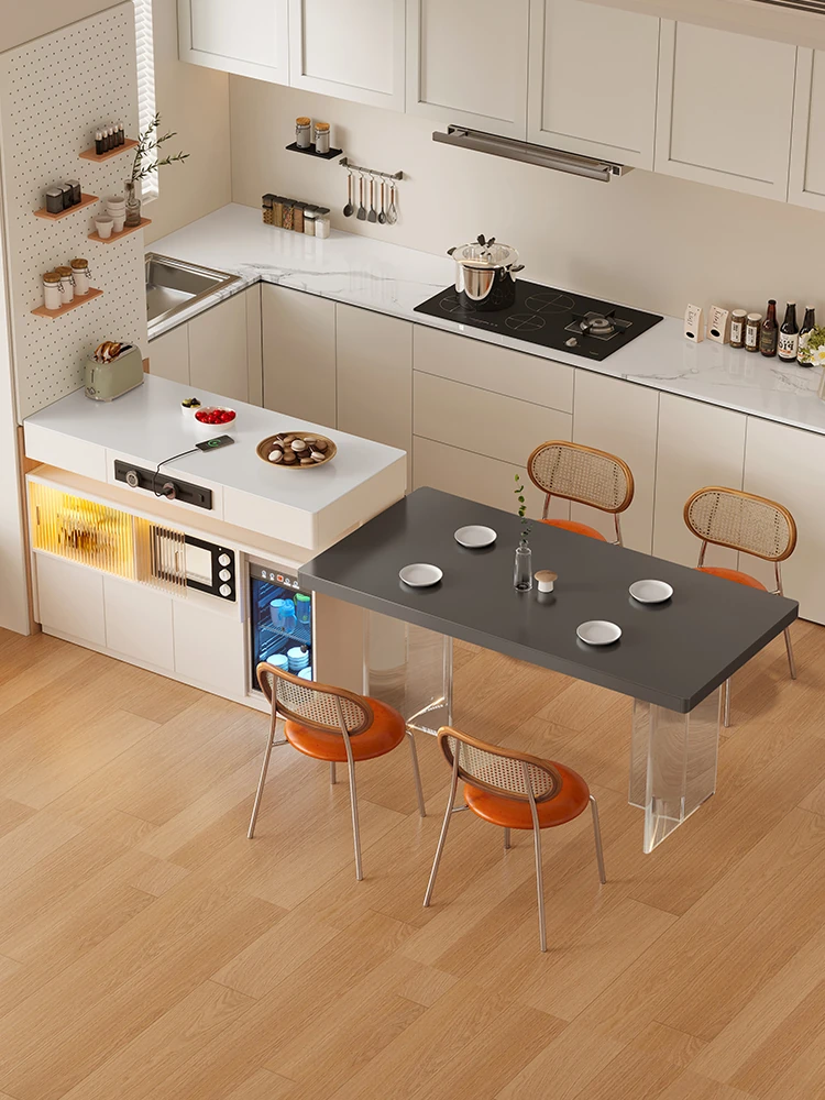 多機能可伸縮ダイニングテーブルセット - 電磁調理器内蔵、移動式アイランドキッチン、岩板デザイン、おしゃれで実用的な茶卓にも!