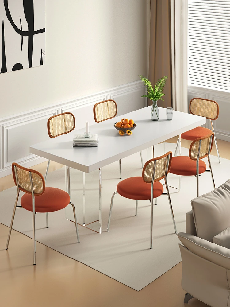 【魅力溢れるデザイン】モダンなミニマリストスタイルの浮遊長方形ダイニングテーブル - おしゃれなリビングにぴったり!白色の岩板テーブル&アクリル脚、1.3メートルの家庭用完璧サイズ!