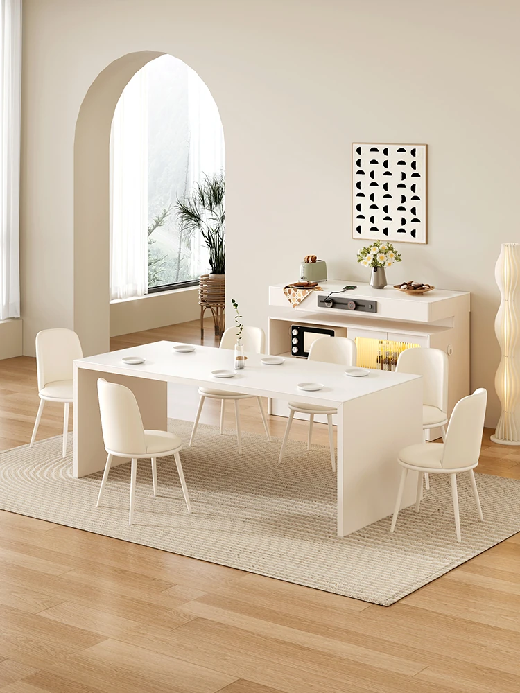【家庭向け】小型純白岩スリムデザイン!収納キャビネット付き長方形ダイニングテーブル&チェアセット - ミニマリストのための6人用厚型テーブル