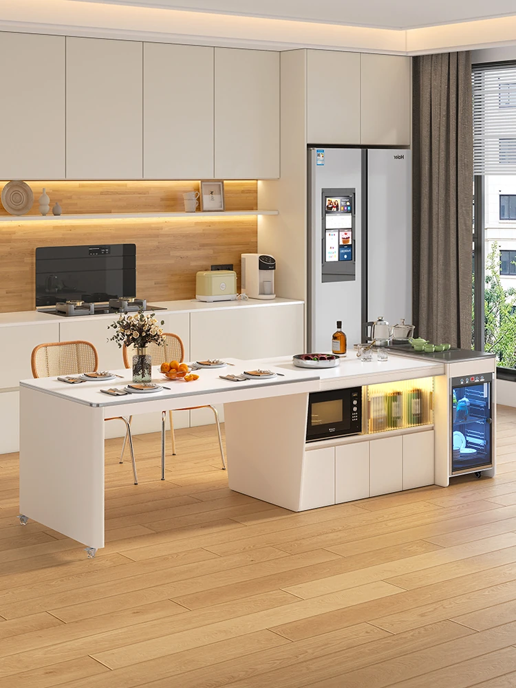 分離型スマート岩板アイランドテーブル:消毒キャビネット付きの浮遊デザイン、小型多機能デスクとしても活躍!