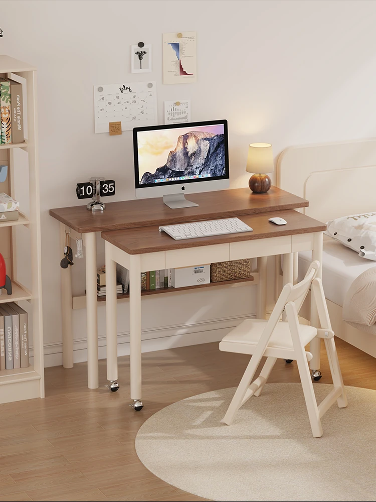 省スペース完美対応!家庭用ダブルデスク - 移動可能なベッドサイドテーブル。折りたたみ式でコンパクト、PC作業やベッドサイドの収納に最適!