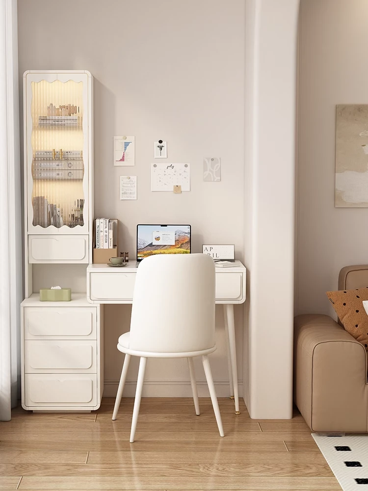 クリームスタイルの多機能デスク&キャビネット一体型: 寝室ノートパソコン用テーブル、化粧台、さらに便利な有孔ボード付き!おしゃれなデザインで心地よい空間作りをサポートします。设计が美しいだけでなく、機能性も抜群!