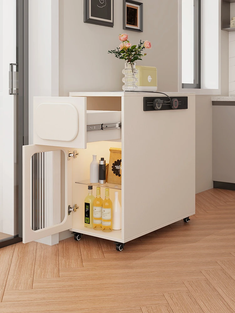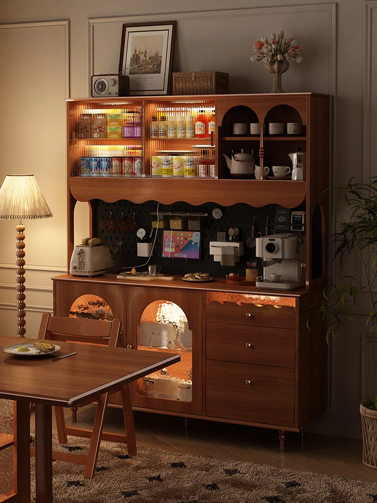 フランス風可動式キッチンキャビネット:実木製ダイニングテーブル付き、多機能コンセント内蔵、おしゃれなティーキャビネット&キッチンアイランド!