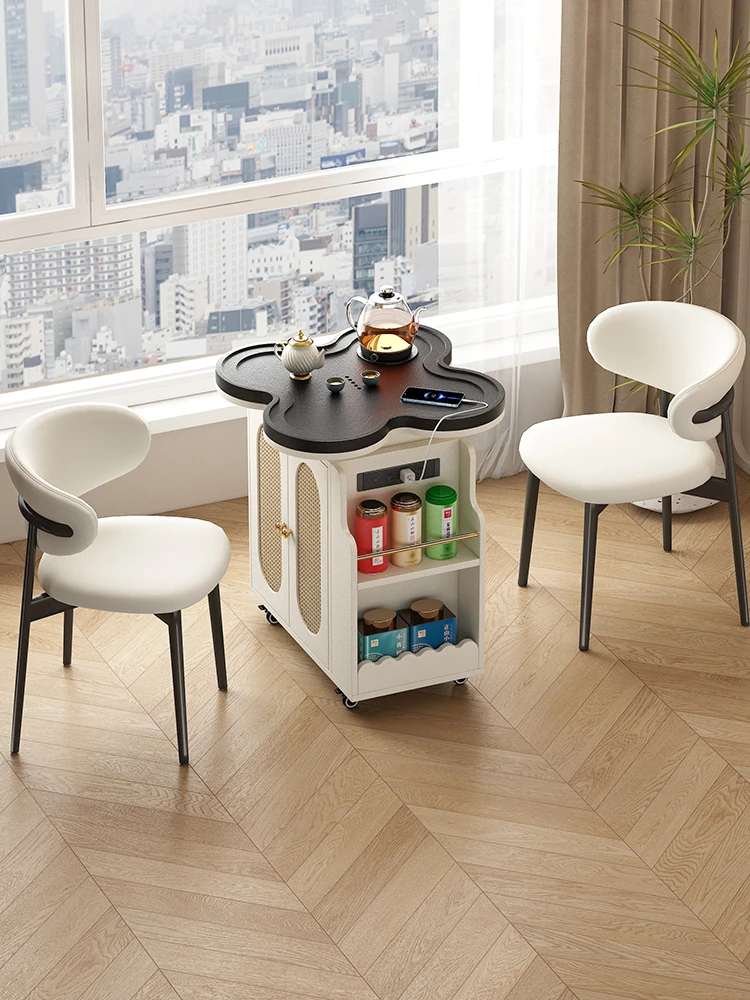 【魅力茶室】多機能移動岩板ティーカート - 小型住宅に最適なオールインワン設計!自動湯沸かし器付きで、リビングでのティータイムがさらに楽しく!シンプルでスタイリッシュなインテリアにもマッチ。
