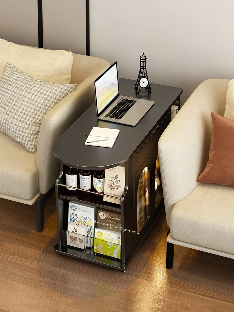 モダンでシンプルなスタイル!軽量ラグジュアリーなソファサイドキャビネット - リビングルームに華を添えるフリップトップデザイン、移動可能な多機能コーヒーテーブル、高さ60cm。