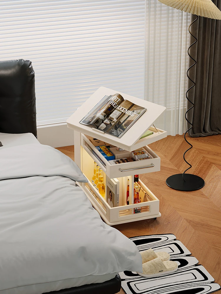 【魅力家居】多機能包豪斯風サイドテーブル - 昇降・回転可能!ベッドサイドやお部屋のコーナーに最適な収納キャビネット、キャスター付きで移動も楽々!