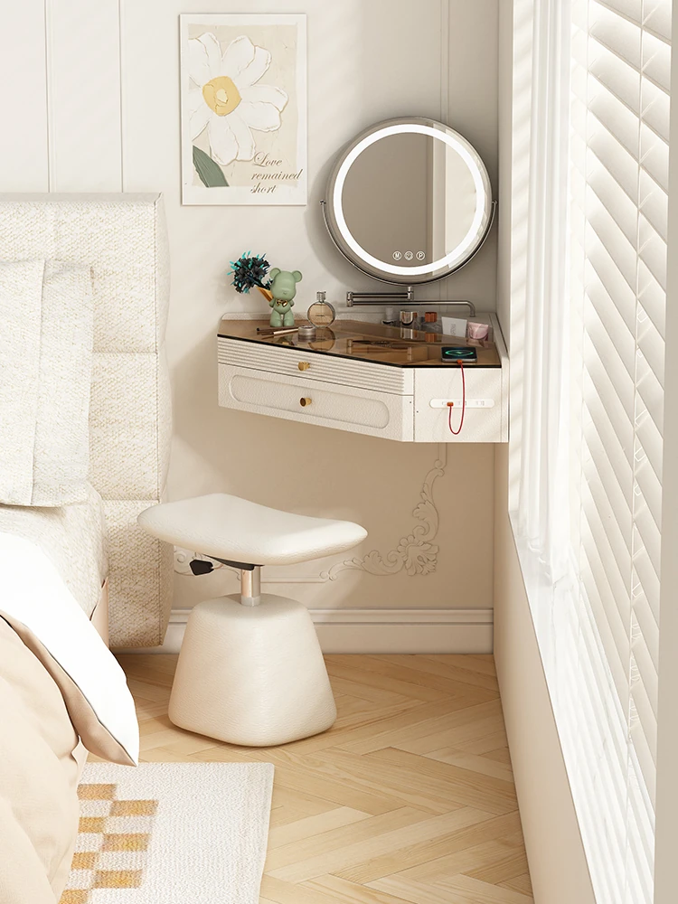 Space-Saving Cream-Style Expandable Vanity: Perfect Small Bedroom Makeup Table with Adjustable Design