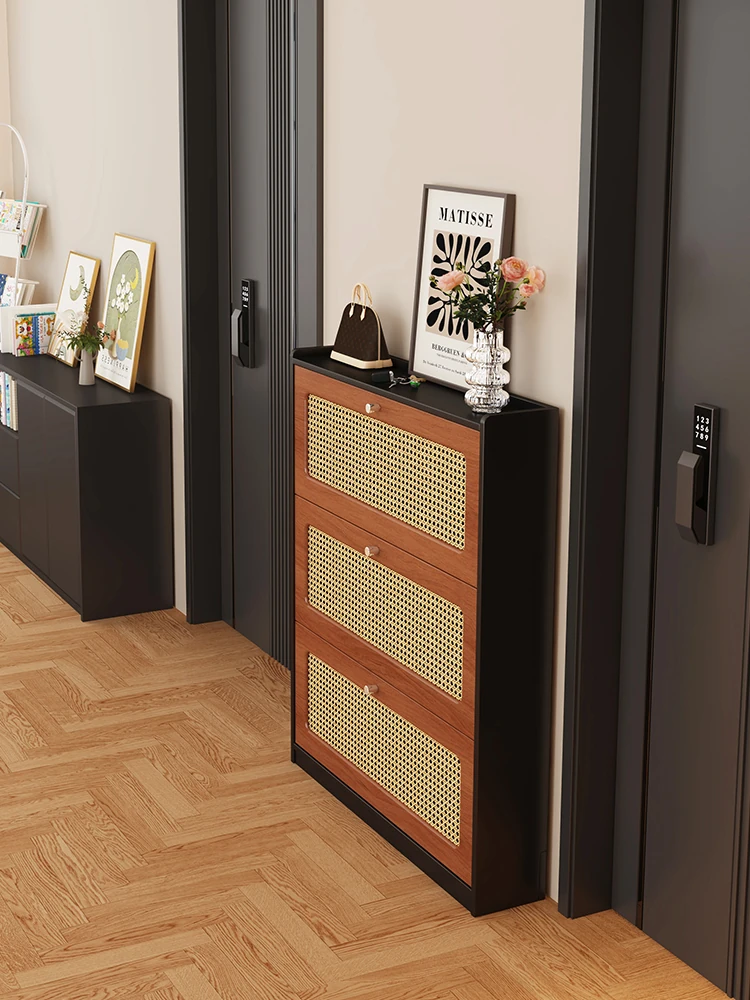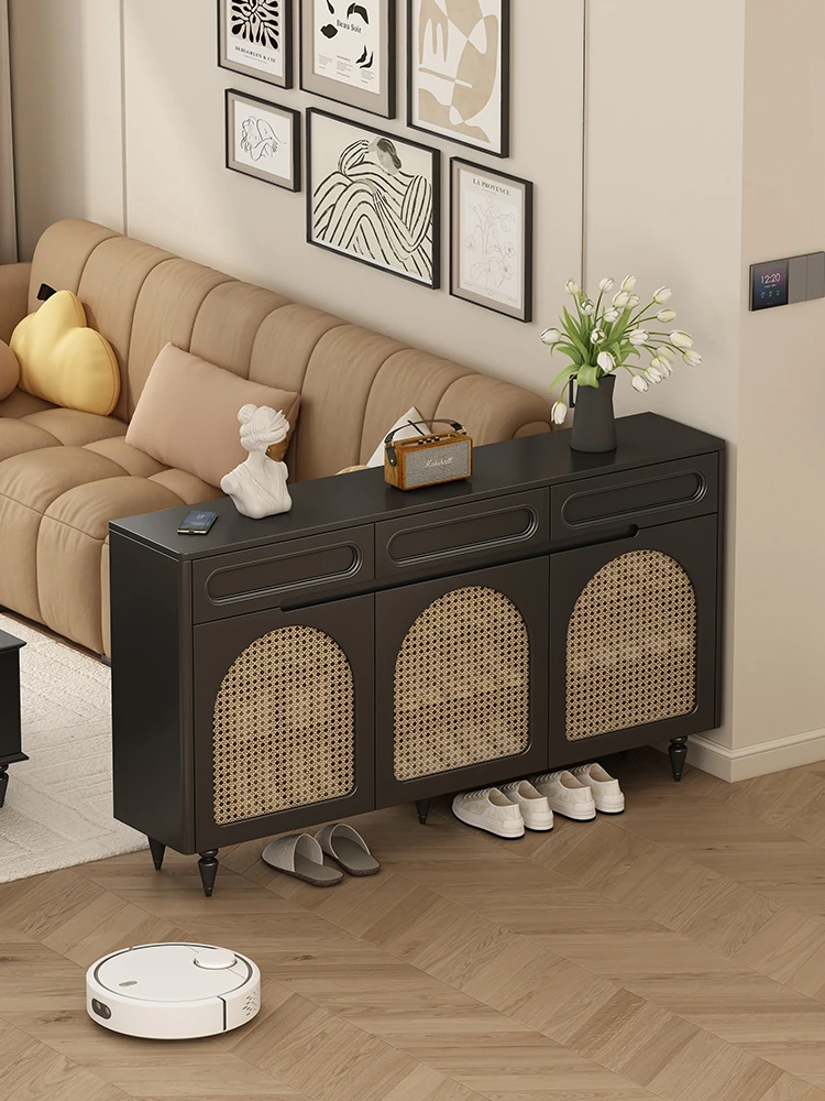 Vintage Woven 35cm Large-Capacity Shoe Cabinet - Spacious Multi-Layer Organizer for Compact Homes, American-Style Black Entryway Cabinet