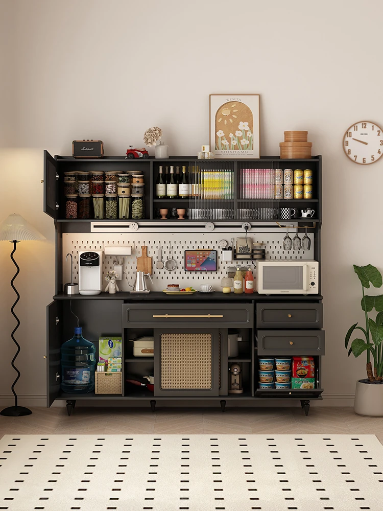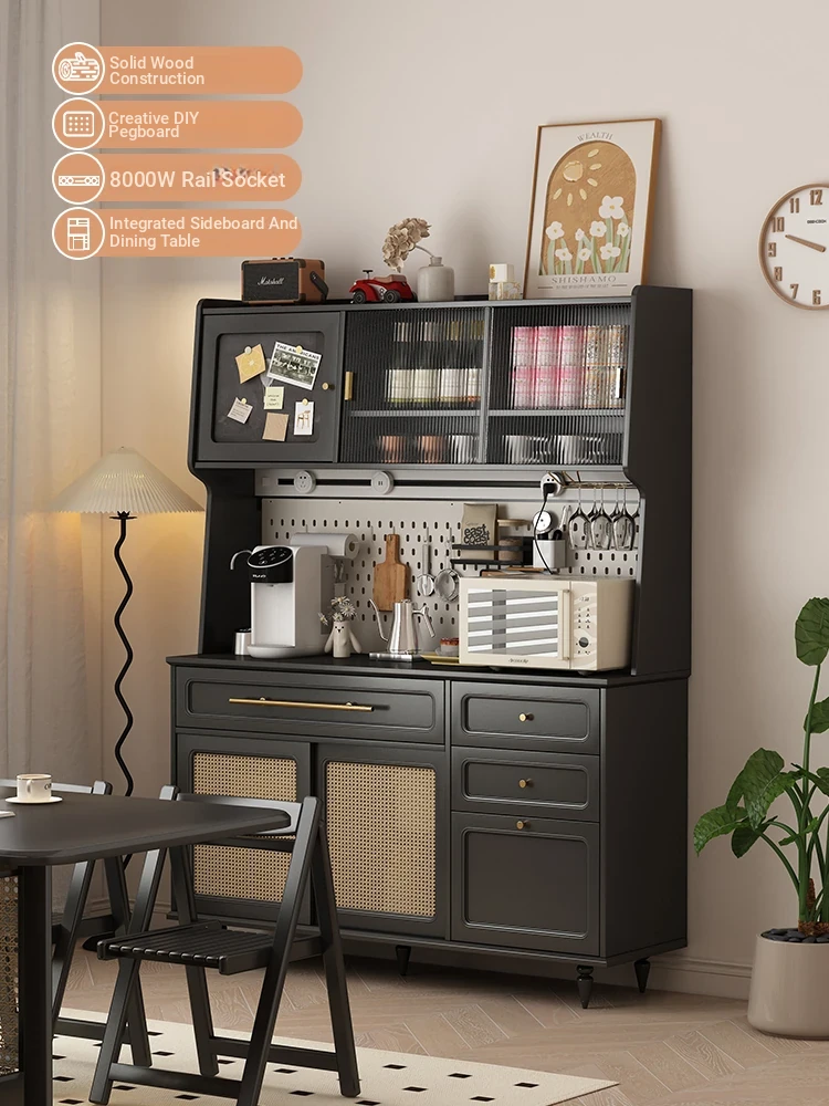 French-Style Mobile Sideboard with Track Socket: Versatile Solid Wood Storage Cabinet for Dining Table or Kitchen Island - Elegant Tea and Snack Station
