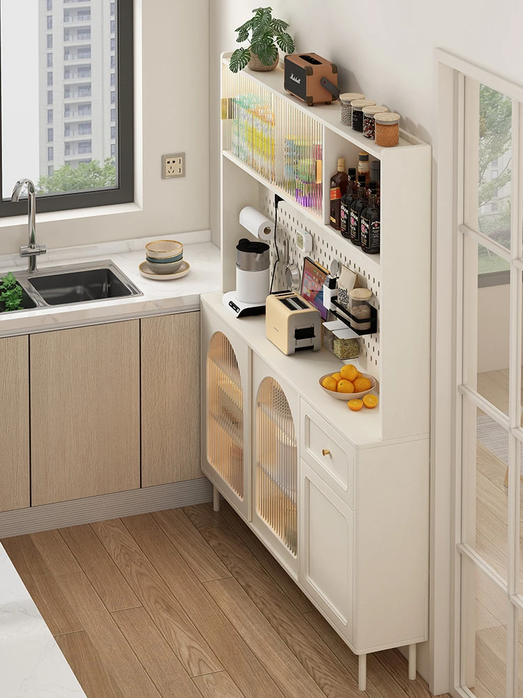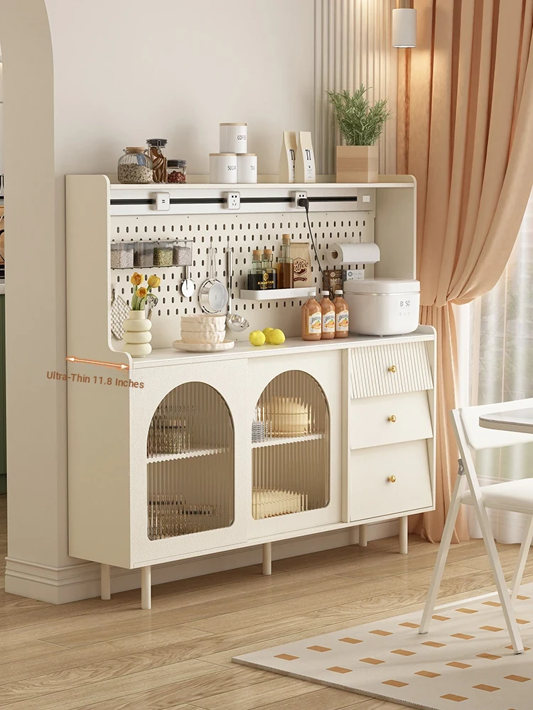 Cream Style Elevated 1.2M Kitchen Sideboard with Built-in Power Outlets & Pegboard – Perfect Multi-Functional Wall-Mount Storage for Dining Room and Living Room