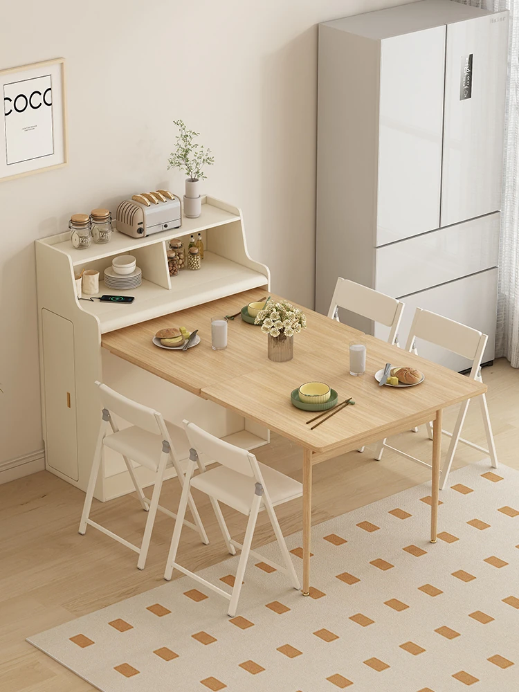 Modern Italian-Style Expandable Dining Table with Built-in Sideboard and Storage Drawers - Perfect for Small Spaces