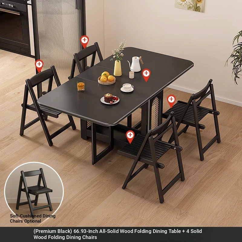 66.93 in solid wood Foldable dining table [Classy Black] + solid wood Foldable dining chair * 4