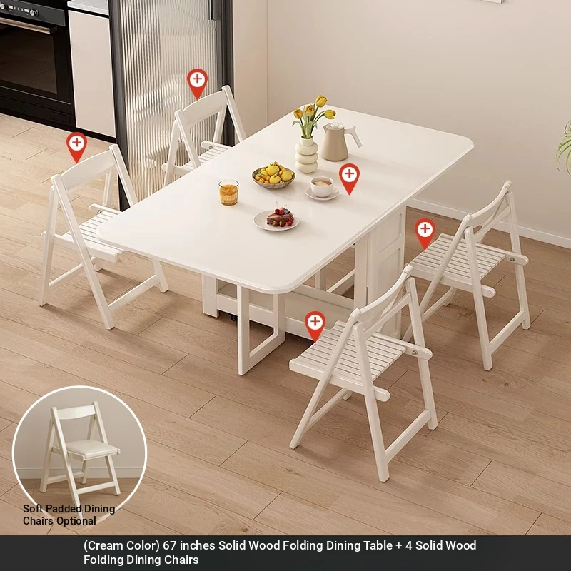 66.93 in solid wood Foldable dining table [cream] + solid wood Foldable dining chair * 4