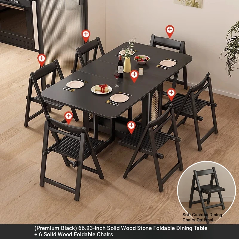 66.93 in solid wood rock plate Foldable dining table [Classy Black] + solid wood Foldable dining chair * 6