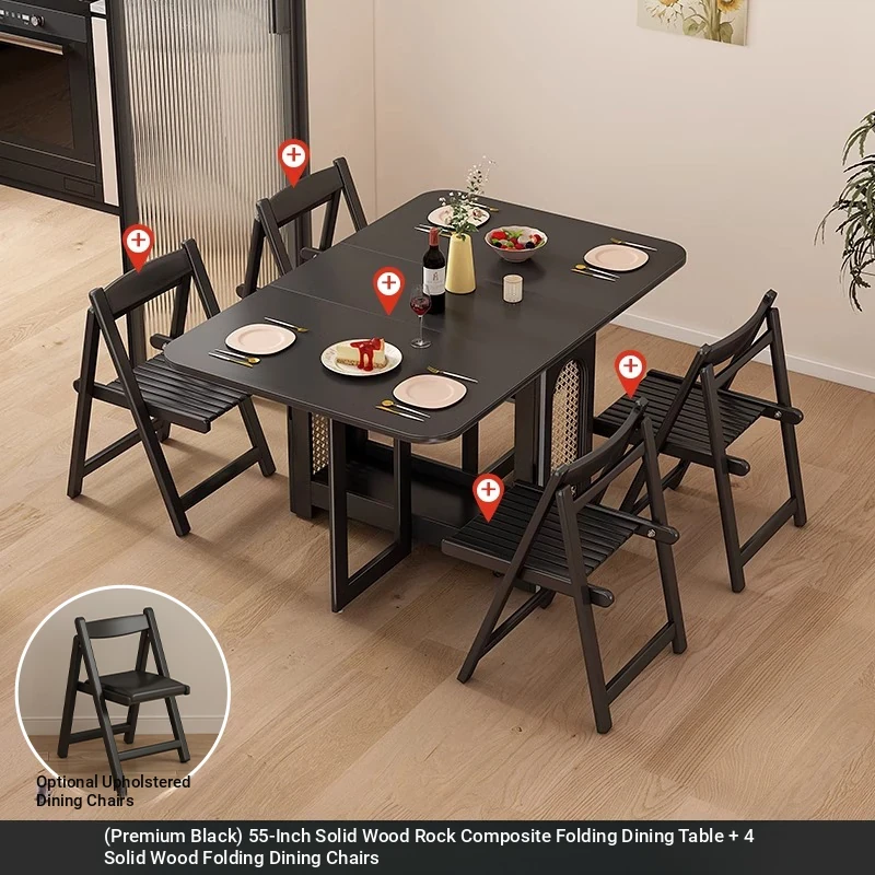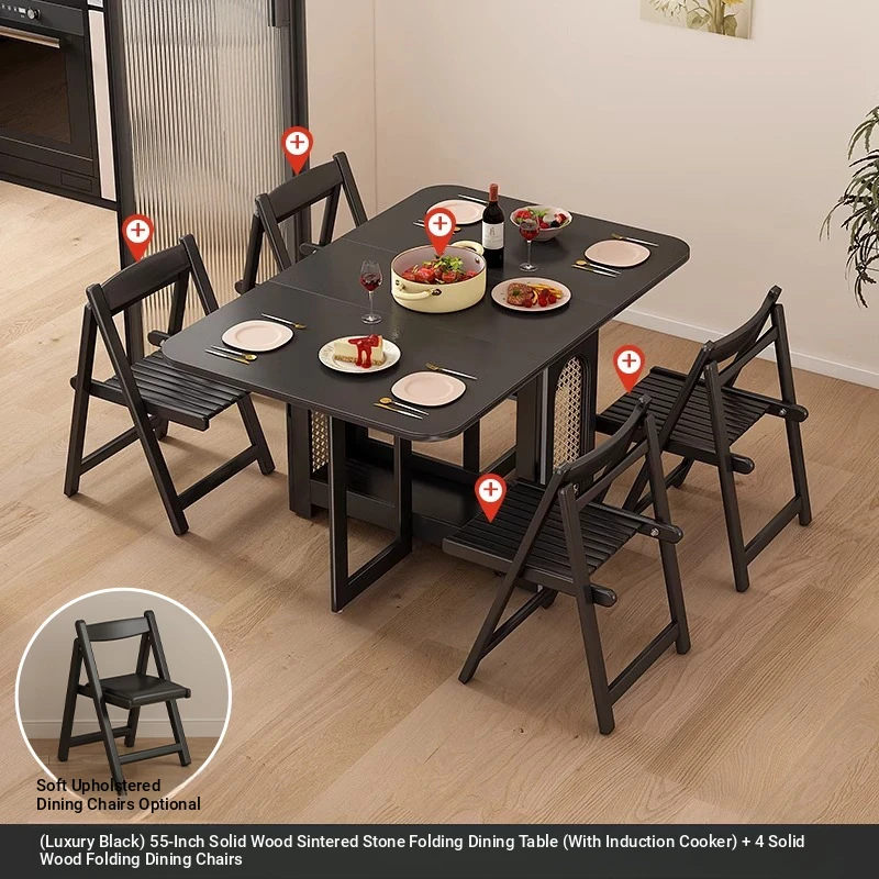 55.12 in solid wood rock plate Foldable table [Classy Black] + Induction cooker + solid wood Foldable dining chair * 4