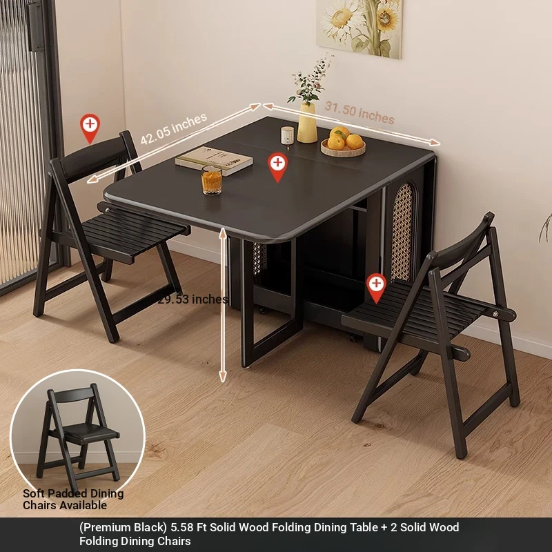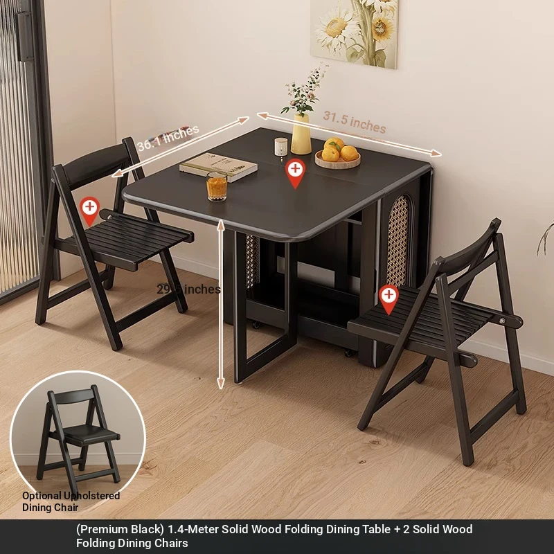 55.12 in solid wood Foldable dining table [Classy Black] + solid wood Foldable dining chair * 2