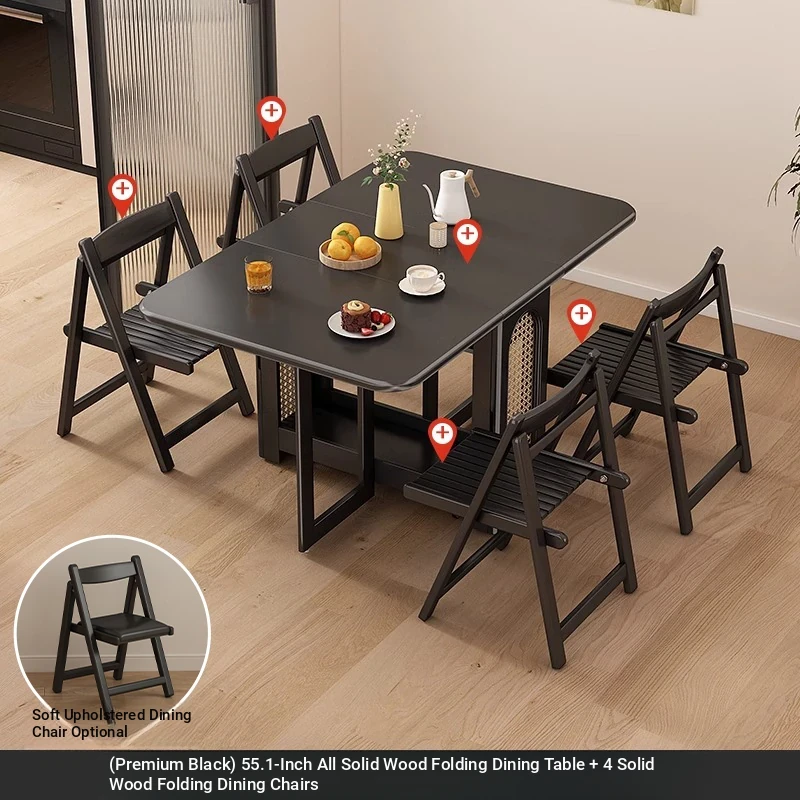 55.12 in solid wood rock plate Foldable dining table [Classy Black] + solid wood Foldable dining chair * 4