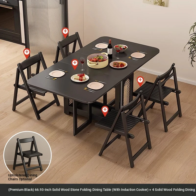 66.93 in solid wood rock plate Foldable table [Classy Black] + Induction cooker + solid wood Foldable dining chair * 4