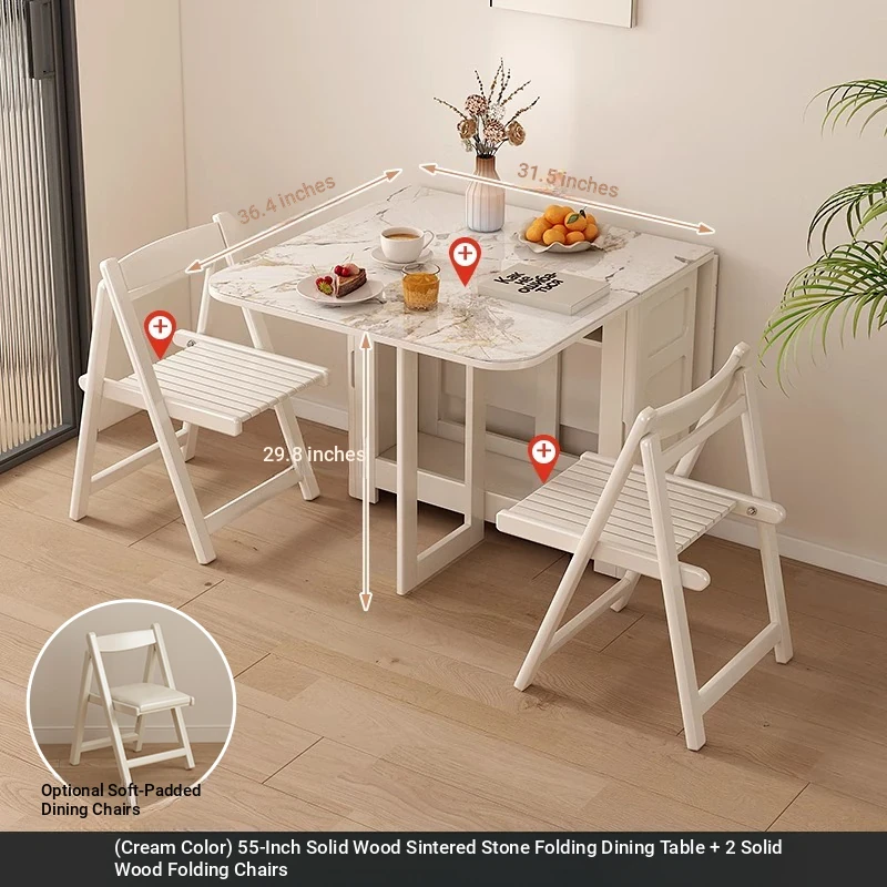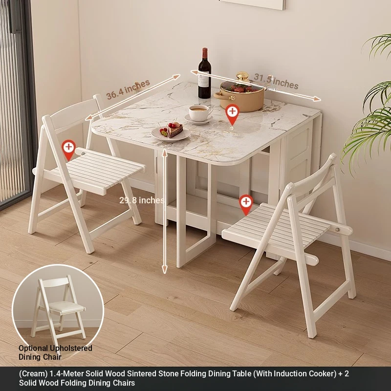 55.12 in solid wood rock board Foldable dining table [cream] + Induction cooker + solid wood Foldable dining chair * 2