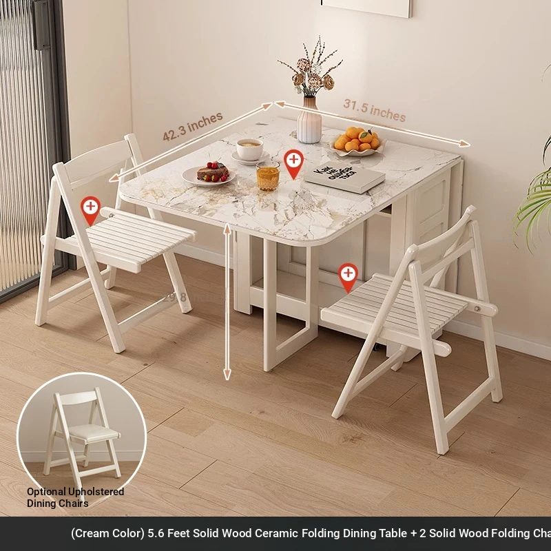 55.12 in solid wood rock board Foldable dining table [cream] + solid wood Foldable dining chair * 2