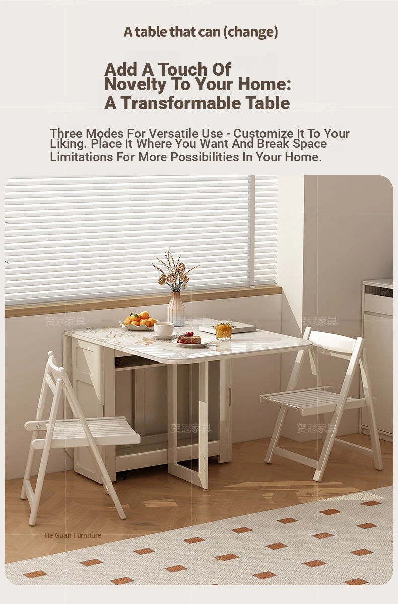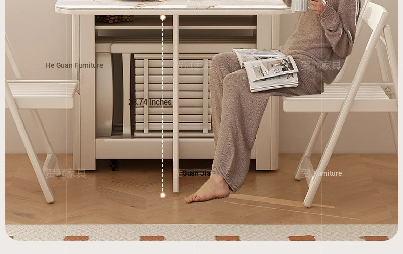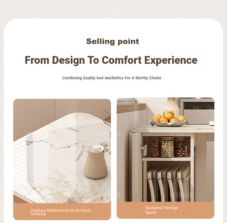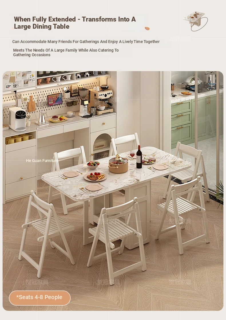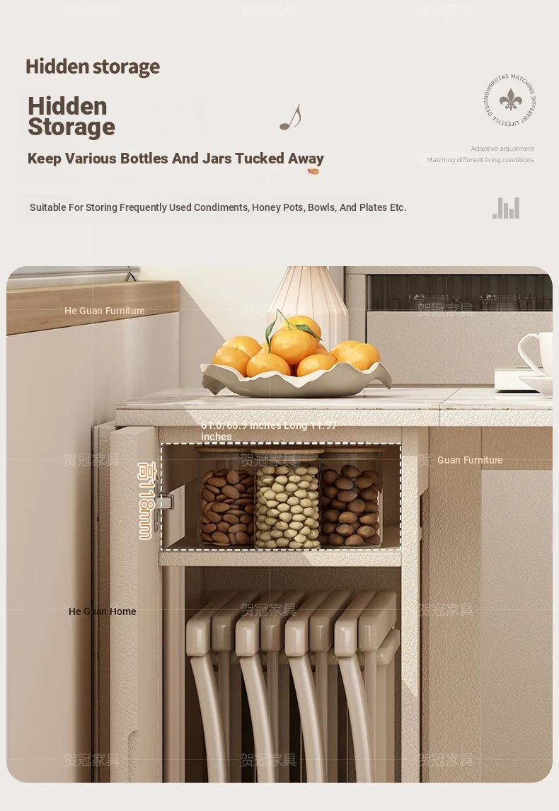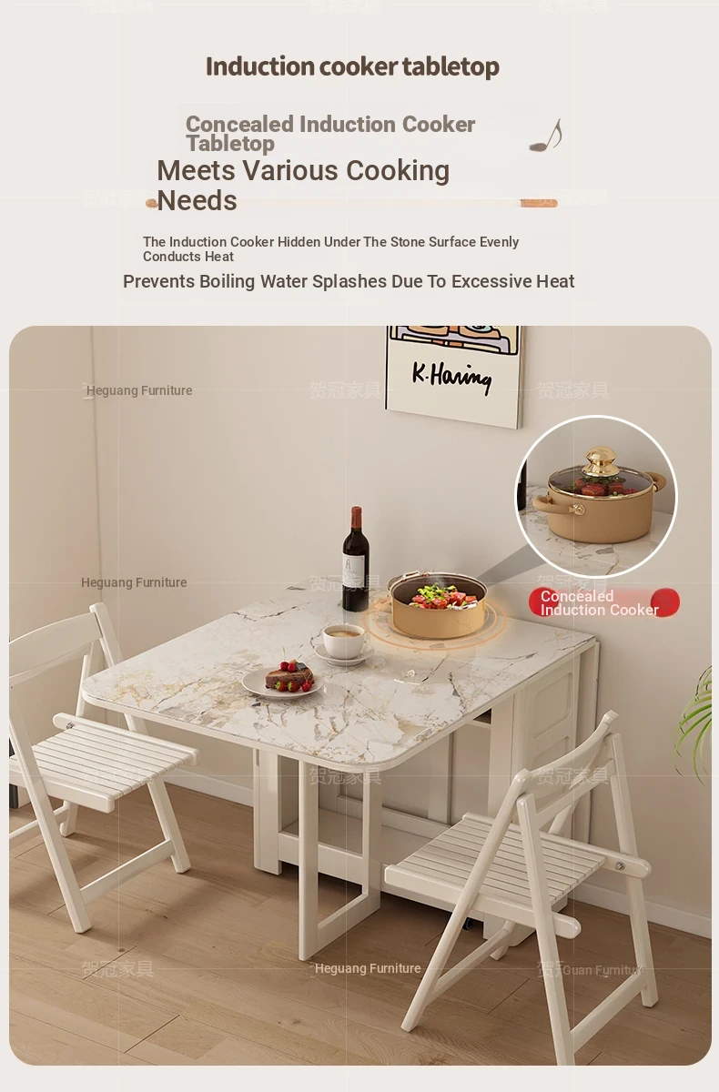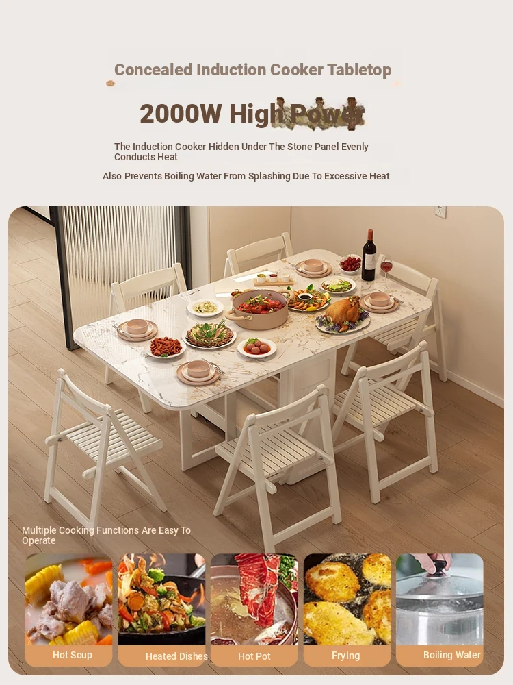 Creamy Style Sintered Stone Dining Table with Built-in Induction Cooker - Multifunctional, Space-Saving Foldable Table with Concealed Storage Cabinet