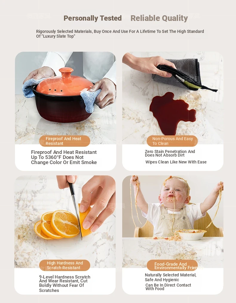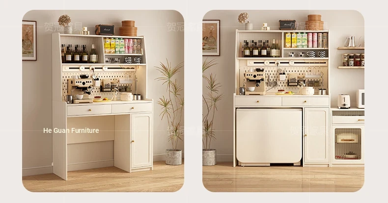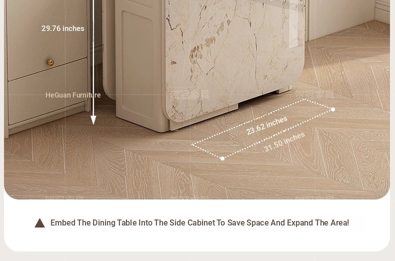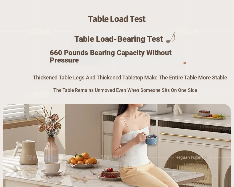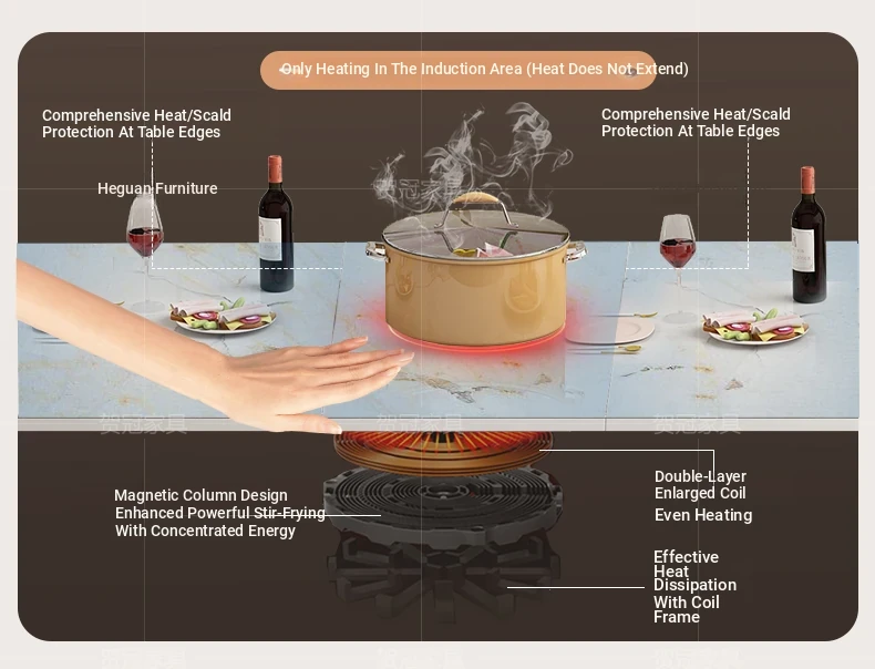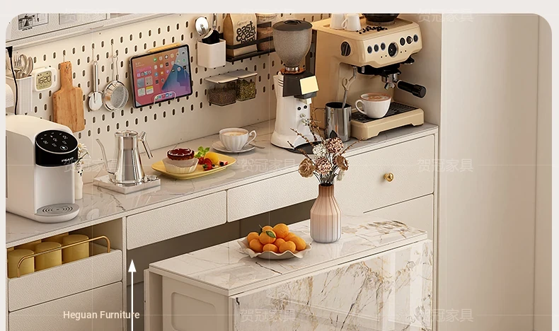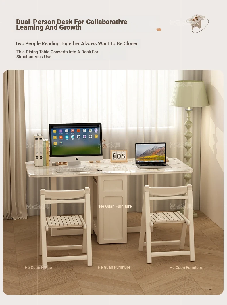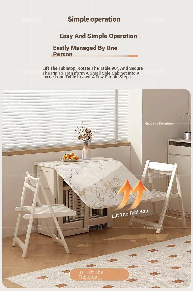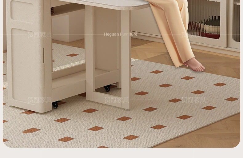 Creamy Style Sintered Stone Dining Table with Built-in Induction Cooker - Multifunctional, Space-Saving Foldable Table with Concealed Storage Cabinet