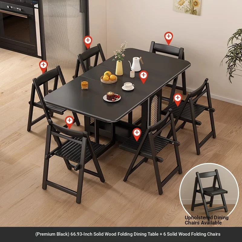 66.93 in solid wood Foldable dining table [Classy Black] + solid wood Foldable dining chair * 6