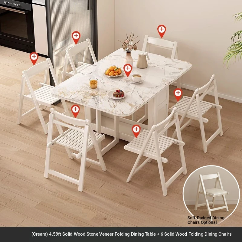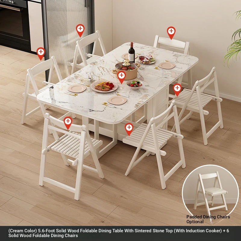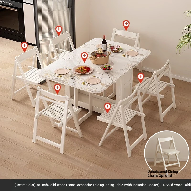 55.12 in solid wood rock board Foldable table [cream] + Induction cooker + solid wood Foldable dining chair * 6