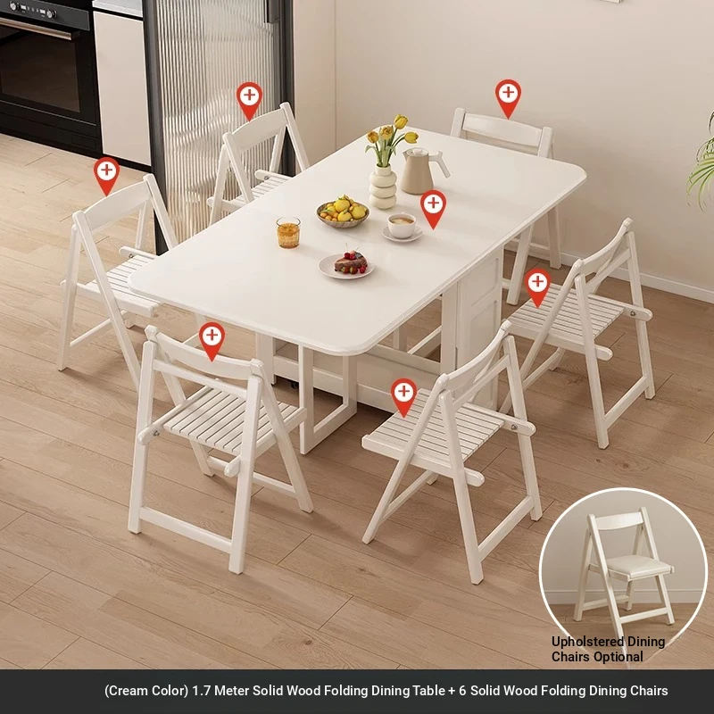 66.93 in solid wood Foldable dining table [cream] + solid wood Foldable dining chair * 6