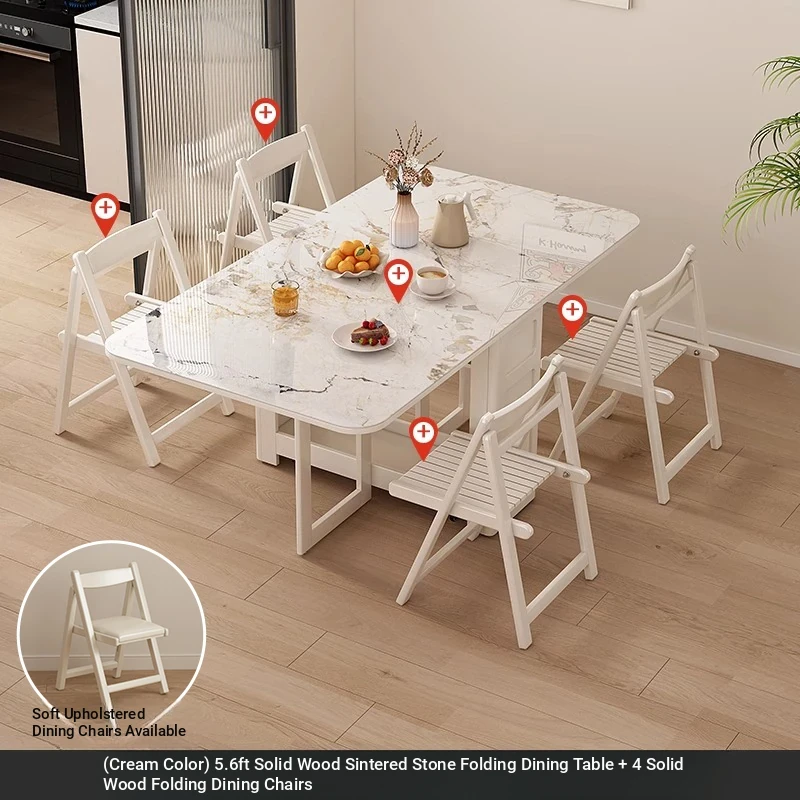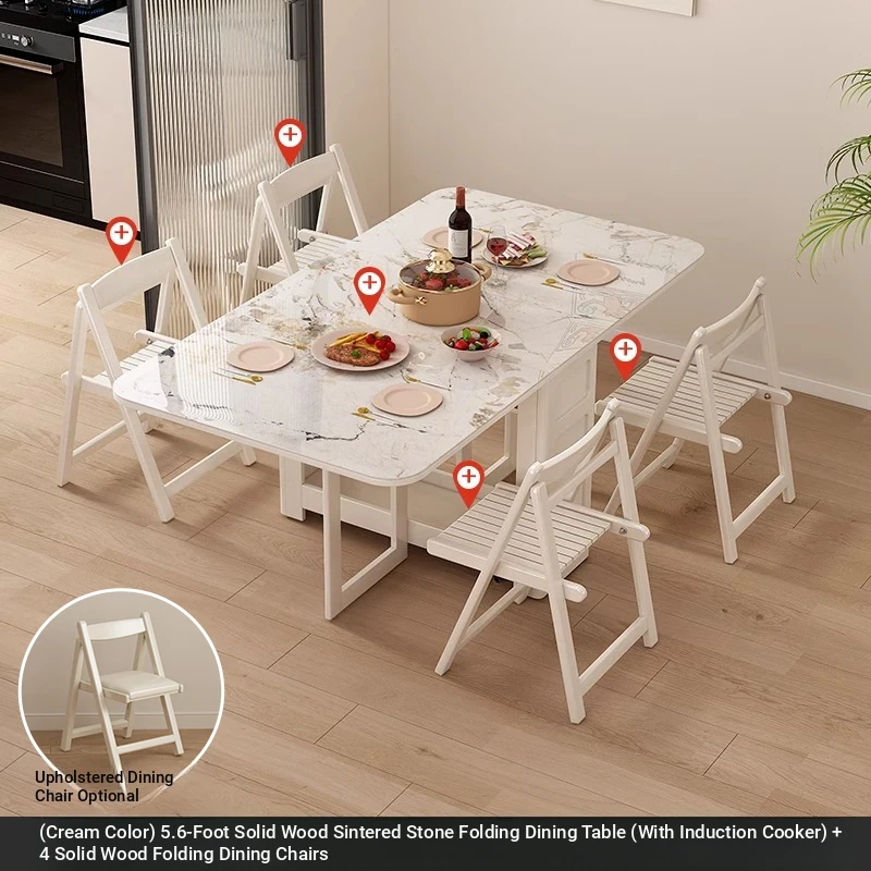 66.93 in solid wood rock board Foldable dining table [cream] + Induction cooker + solid wood Foldable dining chair * 4