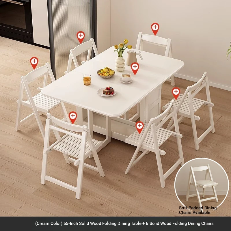 55.12 in solid wood Foldable dining table [cream] + solid wood Foldable dining chair * 6