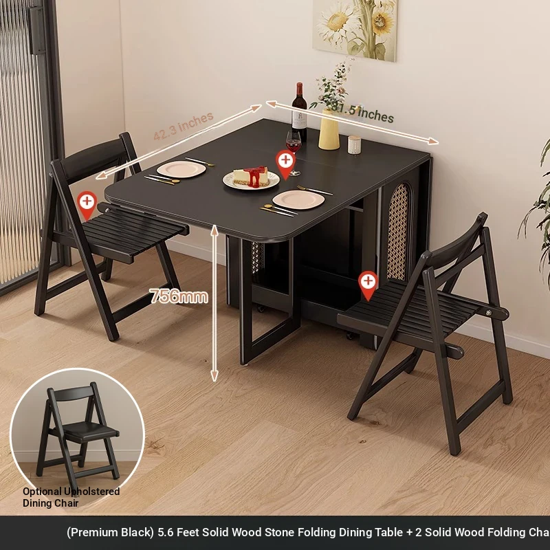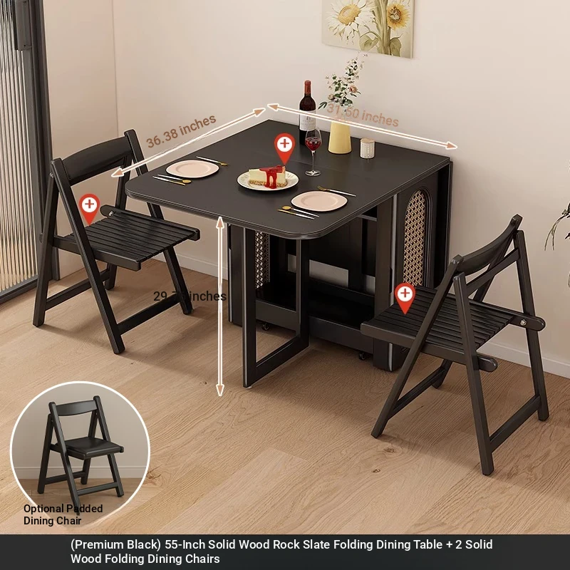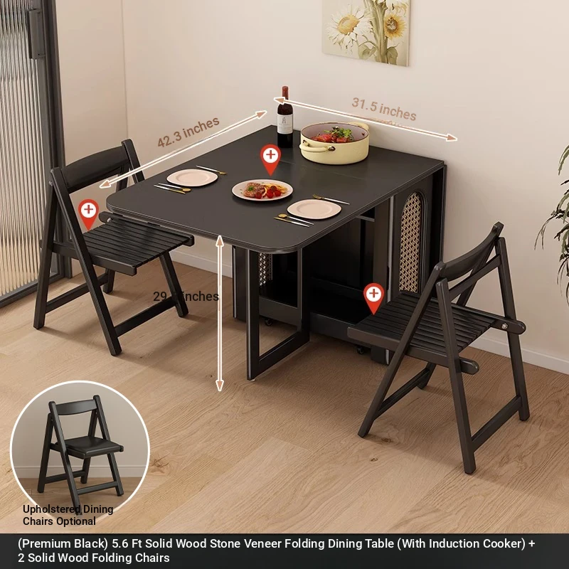 55.12 in solid wood rock plate Foldable dining table [Classy Black] + Induction cooker + solid wood Foldable dining chair * 2