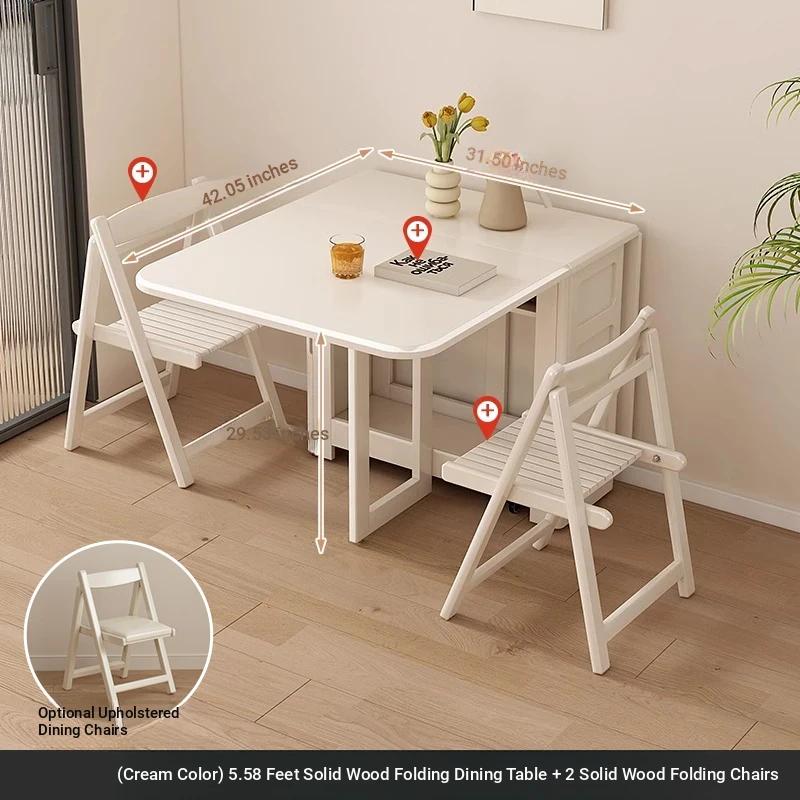66.93 in solid wood Foldable dining table [cream] + solid wood Foldable dining chair * 2