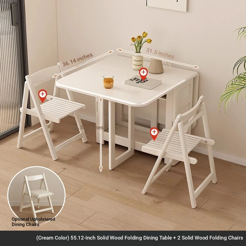 55.12 in solid wood Foldable dining table [cream] + solid wood Foldable dining chair * 2