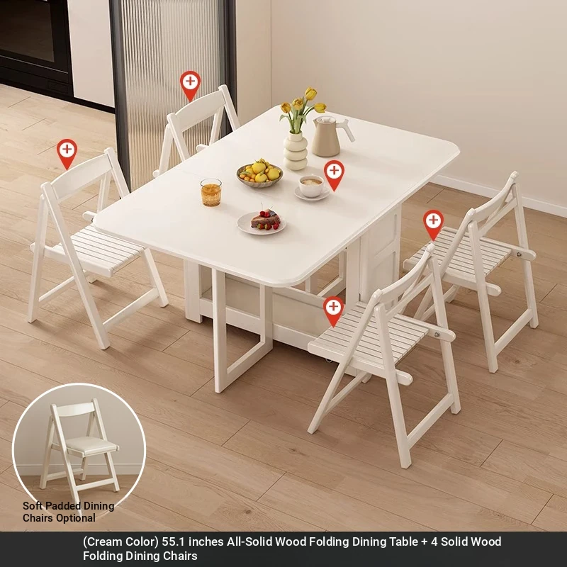 55.12 in solid wood Foldable dining table [cream] + solid wood Foldable dining chair * 4