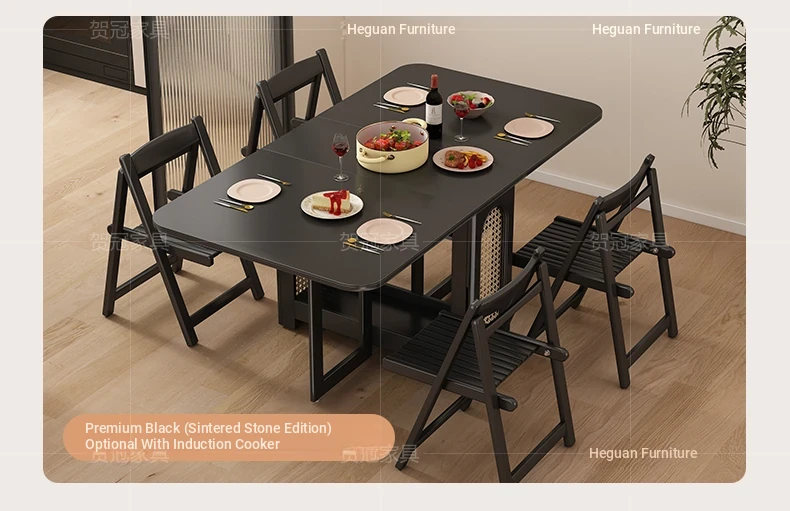 55.12 in solid wood rock plate Foldable table [Classy Black] + Induction cooker