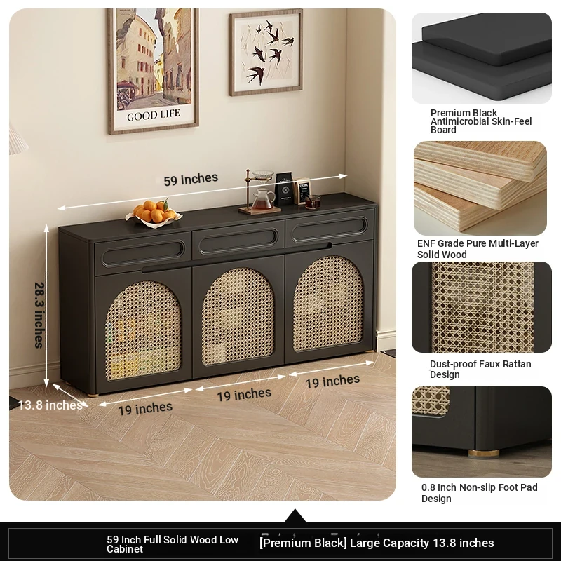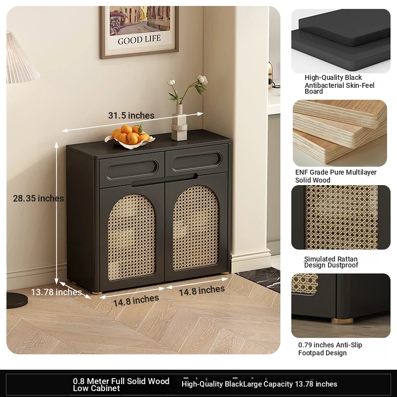 1.5 rattan door shoe cabinet 13.78in [five anti-bacterial Classy Black]]