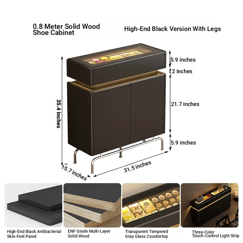 31.50 in shoe cabinet 15.75in [with feet + five anti-bacterial Classy Black]]