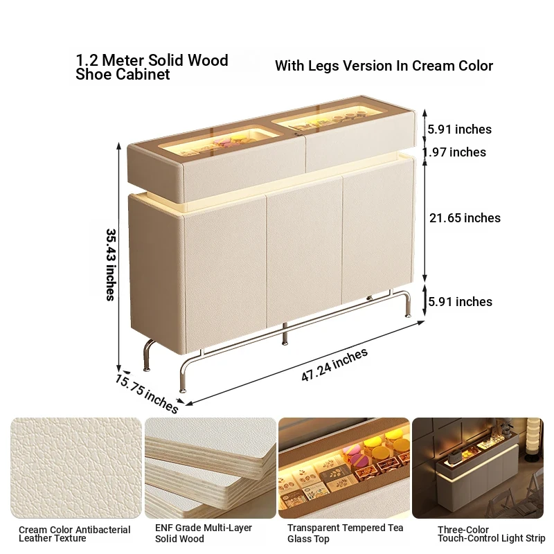 47.24 in shoe cabinet 15.75in [with feet + five anti-bacterial leather White]]