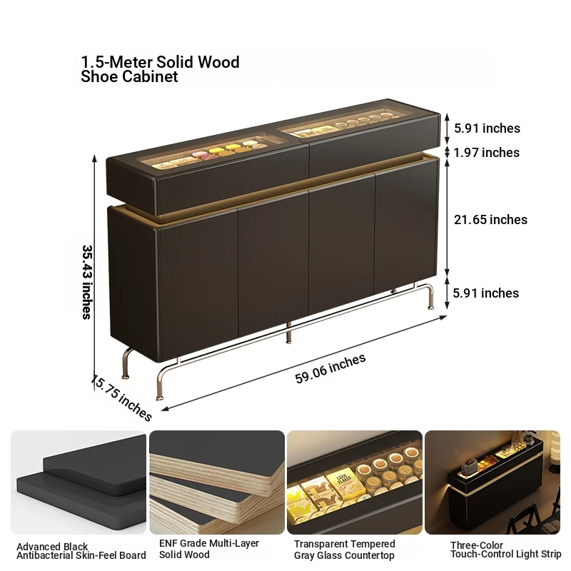 59.06 in shoe cabinet 15.75in [with feet + five anti-bacterial Classy Black]]