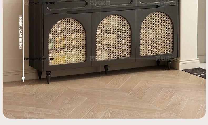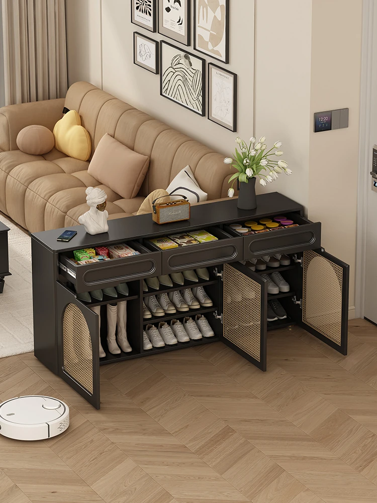 Vintage Solid Wood & Woven Rattan Shoe Cabinet - Spacious Multi-Layer Design, Extra Deep 35cm for Entryway - Perfect for Home Use!