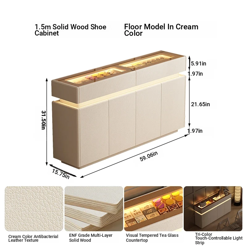59.06 in shoe cabinet 15.75in [Floor + five anti-bacterial leather White]]