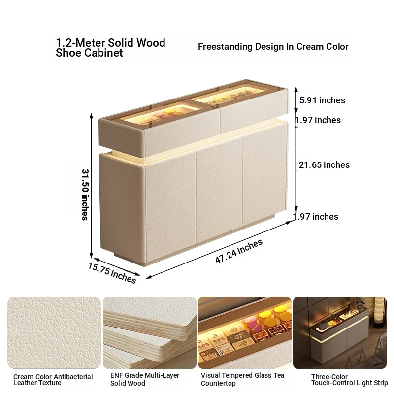 47.24 in shoe cabinet 15.75in [Floor + five anti-bacterial leather White]]