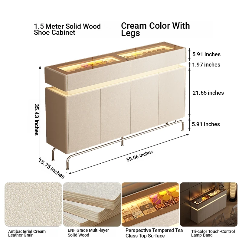 59.06 in shoe cabinet 15.75in [with feet + five anti-bacterial leather White]]
