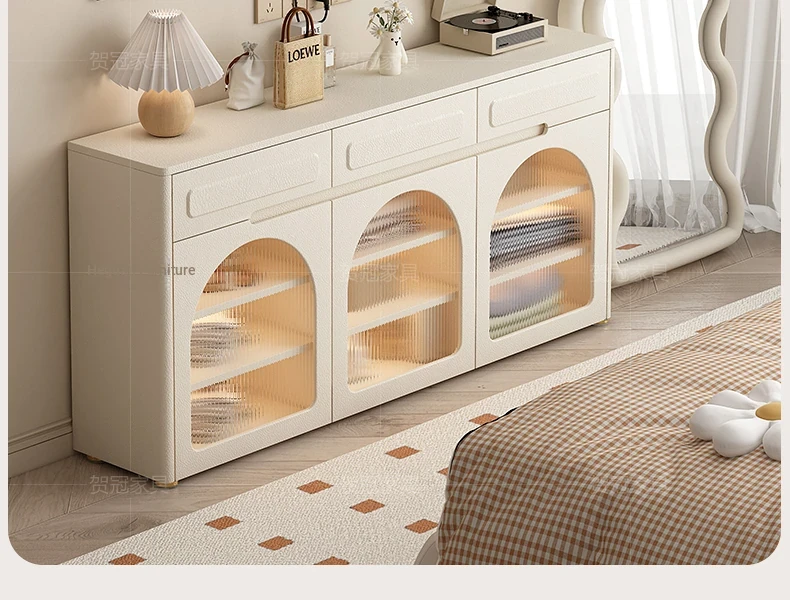 59.06 in glass door shoe cabinet 13.78in [five anti-bacterial leather White]]